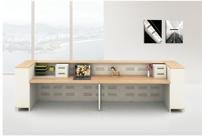 產(chǎn)品型號(hào):LM001 前臺(tái)系列 產(chǎn)品規(guī)格: W3750*D700*H1050 產(chǎn)品材質(zhì):E1級(jí)中纖板、貼天然實(shí)木皮,實(shí)木封面,“易涂寶”牌環(huán)保油漆 產(chǎn)品顏色: